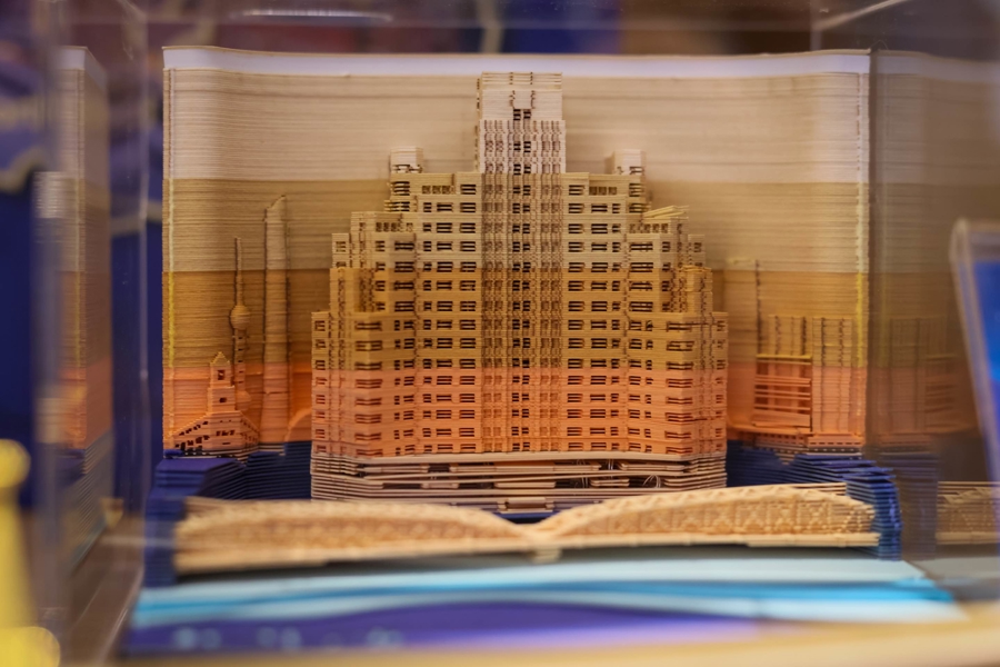 “虹口礼物”北外滩立体造景便签用完后,出现虹口地标设置上海大厦、外白渡桥形象。文陈述记者 叶辰亮摄