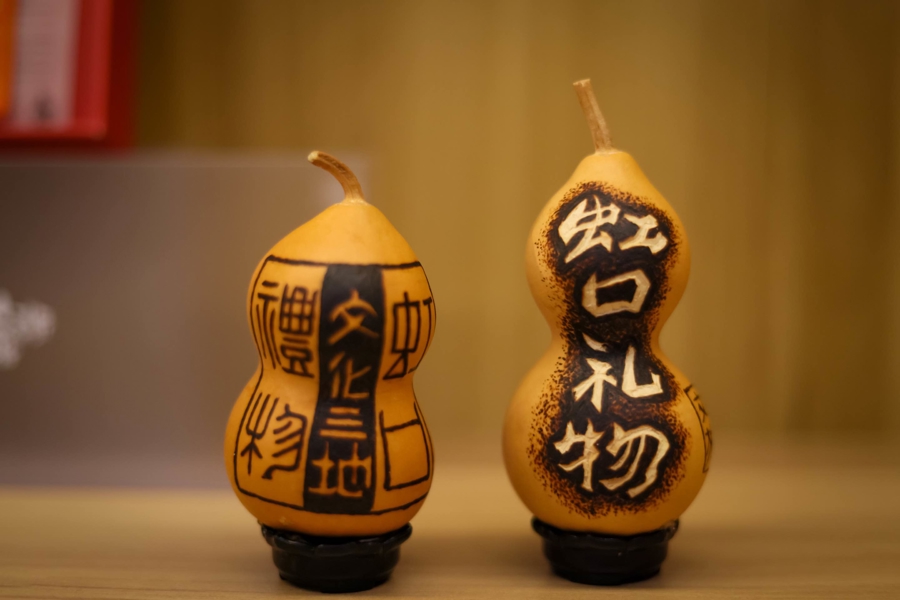 葫芦谐音“福禄”,以海派葫芦艺术雕镂技术制作的烙葫芦入选“虹口礼物”。文陈述记者 叶辰亮摄