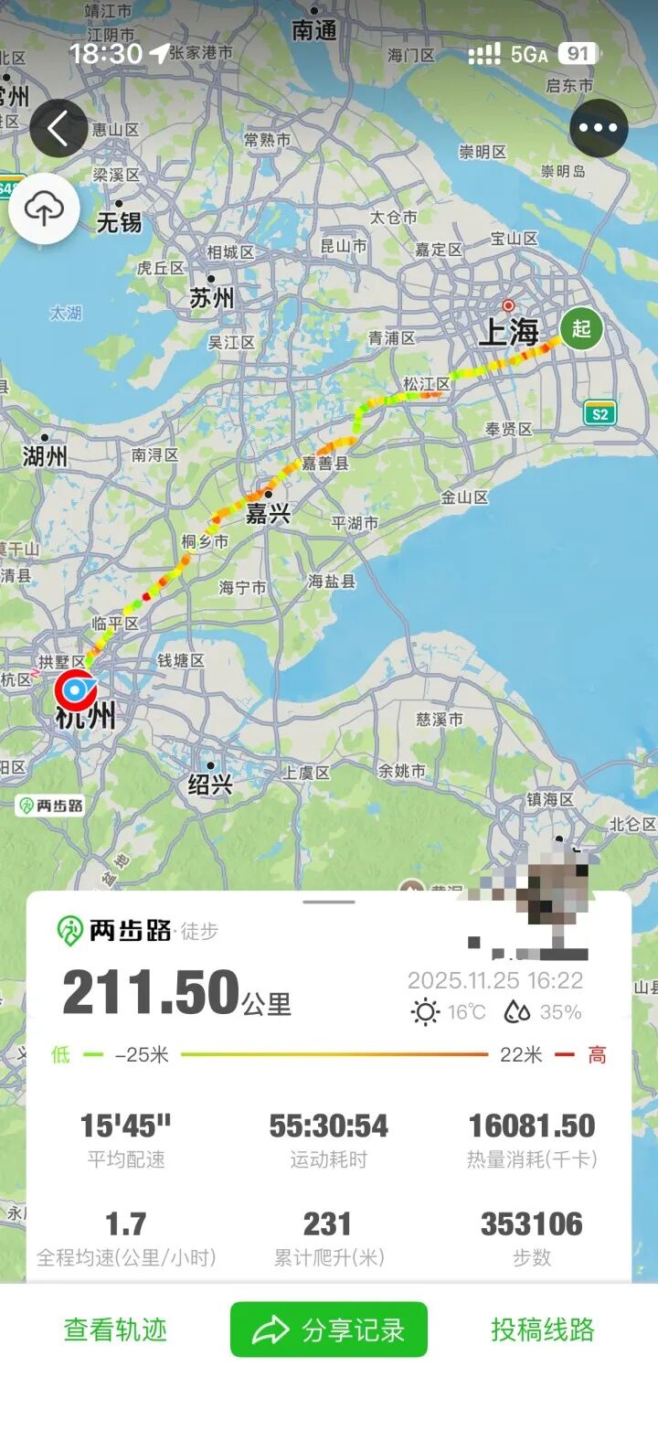 12月1日,网友“翌日会更好i”在酬酢平台发帖:这周我向本分请假、向店长请假,健身也停了,从上海走到了杭州。没思到我方第一次去杭州,竟然是走着去的。